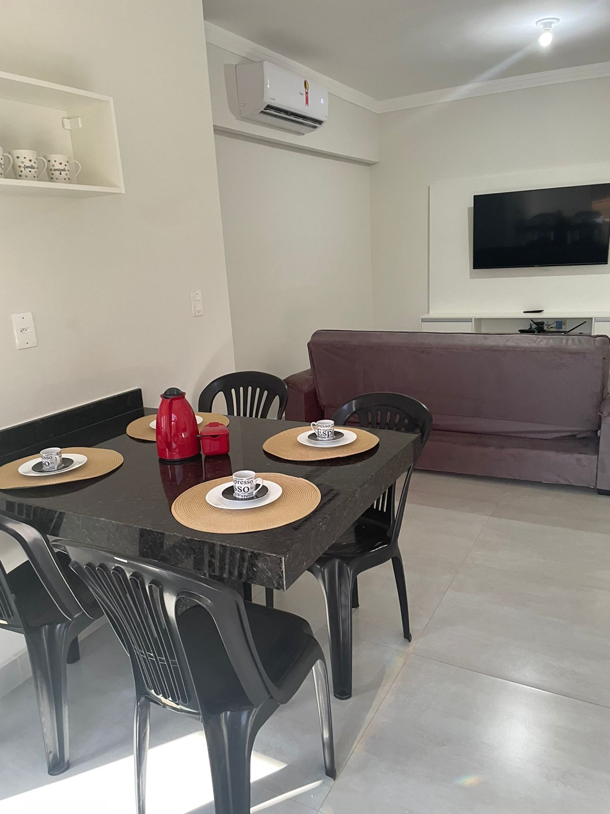 apartamento de luxo. dois quartos sendo um quarto de casal com cama Queen e tv outro quarto de solteiro, com cama de solteiro ambos com. cobertor, travesseiro e roupa de cama. sala boa cozinha completa lavanderia completa CORTESIA DA CASA cada hóspede ganha um café expresso com chá e bolachas.