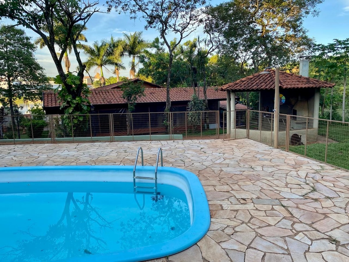 Um lugar lindo, para seus dias agradáveis. 🏡 Chácara de Alto Padrão: ***Até 20 pessoas*** 4 QUARTOS SENDO 3 COM AR CONDICIONADO E 1 COM VENTILADOR DE TETO, SENDO: 👉2 suites C/ AR COND. 👉2 quartos 01 C/AR COND E 01 VENT. TETO Total de 06 Banheiros, sendo 02 sociais + 02 suítes + 02 Lavabos ✅CAMPO FUTEBOL ✅Salao na parte de cima com colchoes e com banheiro sem chuveiro. ✅Sala TV ✅Sala jantar ✅Sala estar ✅Cozinha ✅Alpendre ✅Varandas 2 ✅Garagem coberta para 2 carros ✅Pergolado ✅Piscina