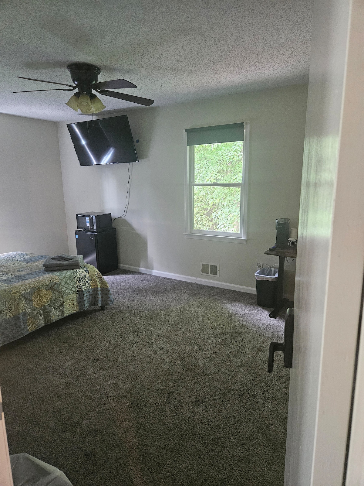 Private entrance. Attached Large studio style suite with queen size bed and multiple amenities for kitchenette. Room is approximately 500 sqft with bathroom and standing shower. Plenty of room to stretch out on couch and dining table to work on with barstools. We are taking extra precautions and sanitizing completely between guests. Close to KSU - 5 mins, Restaurant, shopping areas within minutes away. STR Certificate 000114