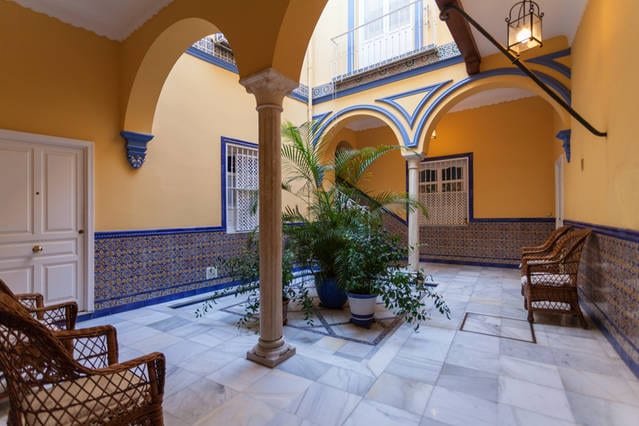 Magnífico dúplex en planta baja situada en el barrio de Santa Cruz, en un entorno inigualable y a cuatro minutos andando de la Giralda. Tres dormitorios, dos cuartos de baño y cocina equipada. Tiene todo lo necesario para hacer de la visita a Sevilla, una experiencia inolvidable. Su localización en un barrio histórico con calles estrechas hace que haya poca luz y humedad en el ambiente . Es algo normal si tenemos en cuenta que está asentado en un barrio construido en la Edad Media .