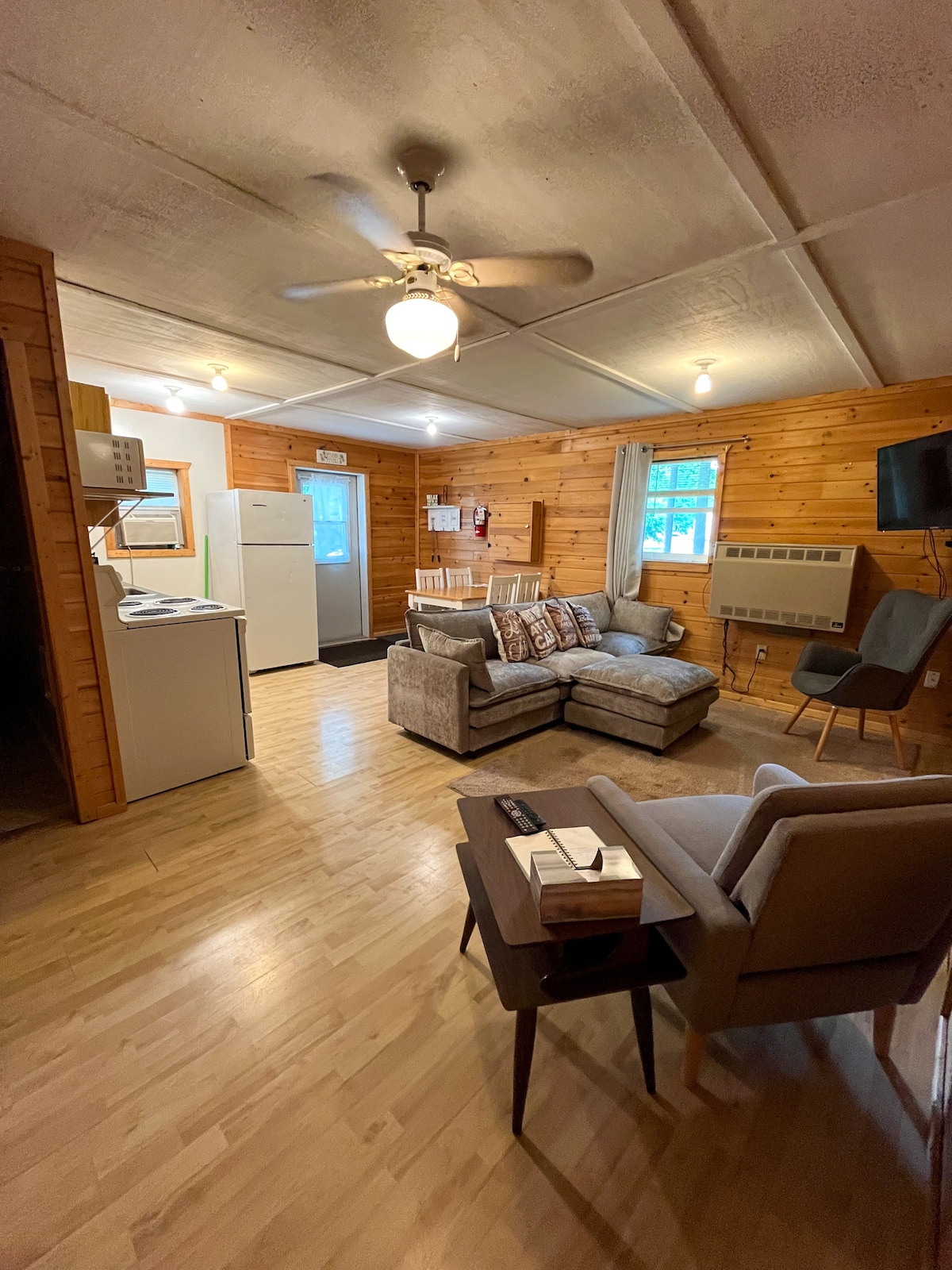 Enjoy the peace and quiet of this quaint little cabin on Kirby Lake. If you are looking for rest and retreat, this place is for you! The cabin is open concept with the living space, dining, kitchen, and bathroom on the main level. The loft boasts two twin beds that each pull out into a king, as well as a pull-out couch downstairs. Enjoy the tranquility of a sunset paddle, evening campfire, the call of loons, and the simplicity Stuga Wald has to offer.