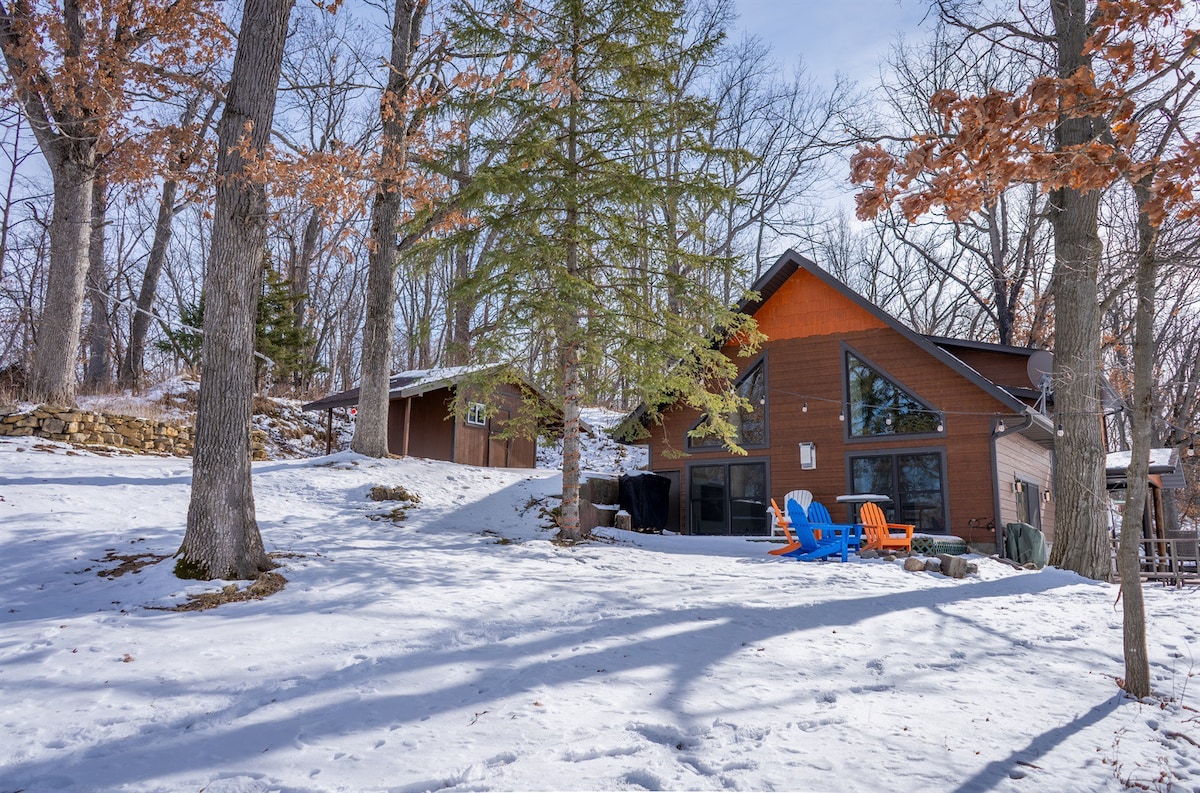 A cozy A-frame cabin tucked in the woods on 13 private acres along the Hay River. Deeply secluded retreat designed for slowing down, reconnecting and finding inspiration, 90 min drive from the Twin Cities. The setting offers rare privacy and a sense of calm that’s hard to come by. Spend your days paddling beneath rock formations, warming up in the wood-fired sauna, relaxing with a book by the fire, watching the wildlife go by, and experiencing a peaceful, restorative escape in every season.