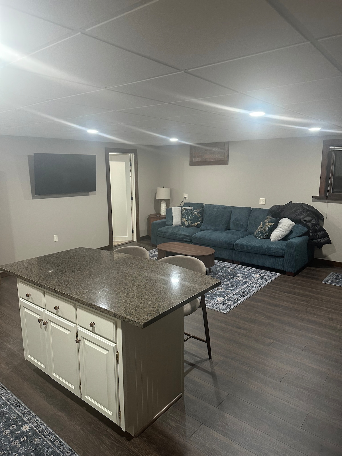 Lake across the road within view, walking distance to public beach, new Gotham sports complex and boat landing, on public snowmobile and ATV trail. Two-bedroom home all on one level with very comfortable beds. Small cabin feel within walking distance to downtown. Massage chair and 2 kayaks available for your use. High Speed Internet that can be used for working remote. Enjoy a peaceful night around a campfire or sitting next to a tiki bar. TV available in each room with Roku.