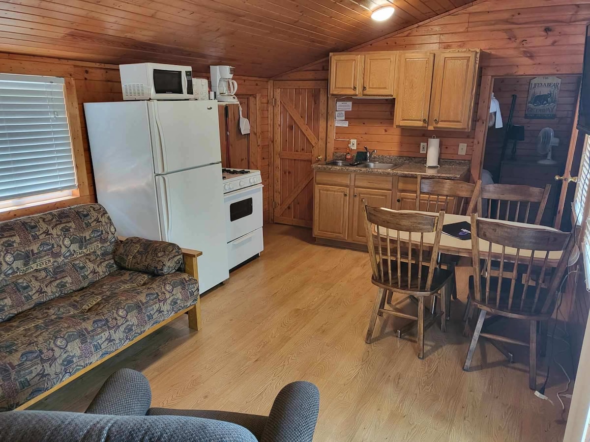 Relax in this cozy lakefront cabin. This north woods themed cabin is perfect for a couple looking for a weekend or week-long getaway. The cabin includes a fully stocked kitchen, a 3/4 bathroom and a separate living area. Relax outside on the attached, covered deck or walk 30 feet to your own dock. Bring your boat and enjoy all that the Chetek Chain of Lakes has to offer. Or rent one of our pontoons by the hour or by the day.