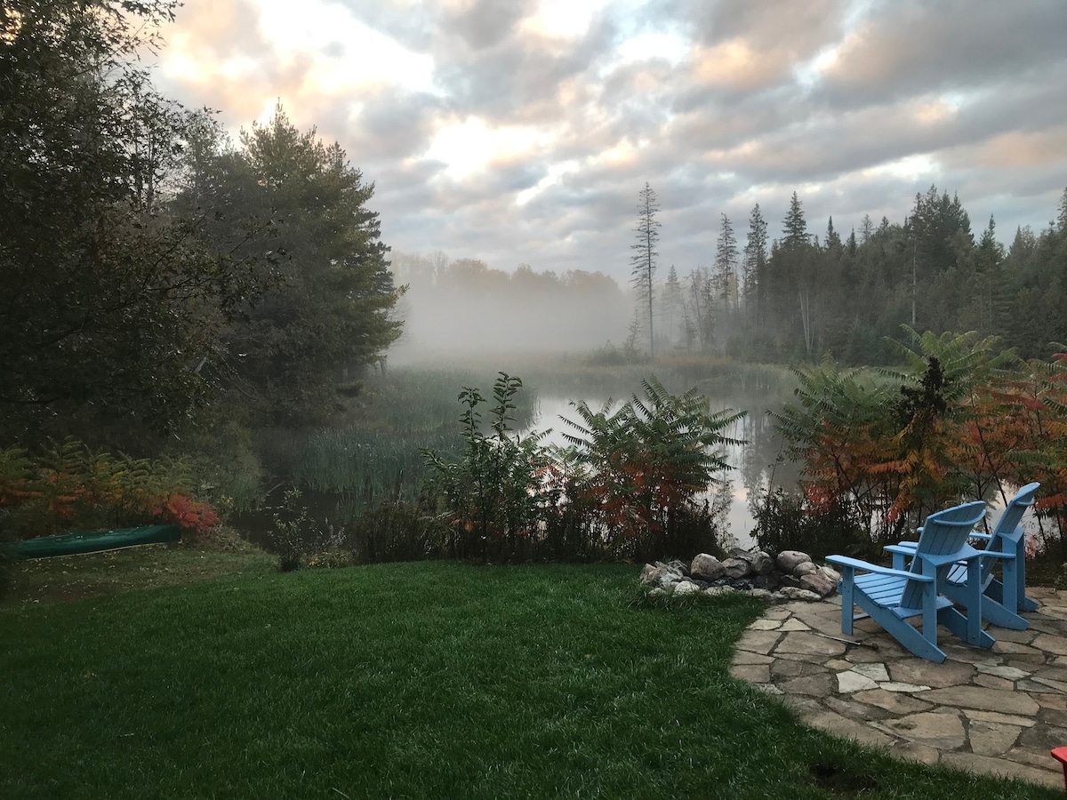 Our guest house is a cozy log cabin with three floors. It is the original homesteader cabin to our property, revived and restored with care. Nestled in the Bonnechere region of Renfrew County, this magical place of solitude offers nature right outside your door. Local paintings by Ottawa Valley landscape artist Angela St. Jean displayed throughout the cabin feature lakes, rivers, and natural places and spaces that surround us.