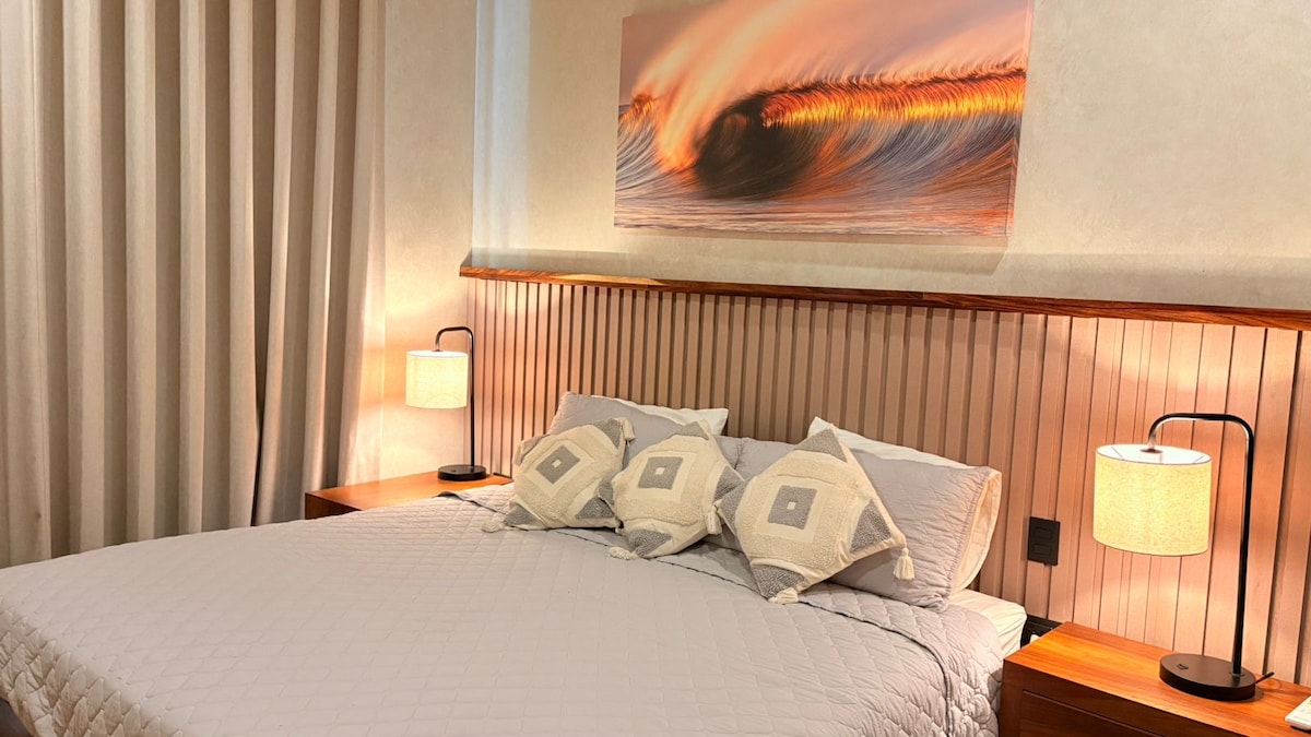 Treat yourself to a peaceful escape in this unique home, thoughtfully and lovingly decorated. Located right on the waterfront, it offers panoramic ocean views. Relax and enjoy breathtaking sunsets from the balcony, complete with lounge chairs, a bar, and a cozy seating area. You’ll also have access to all the shared amenities: swimming pools, jacuzzi, gym, padle court, barbecue, beach access... Here, nature and comfort come together for an unforgettable experience.