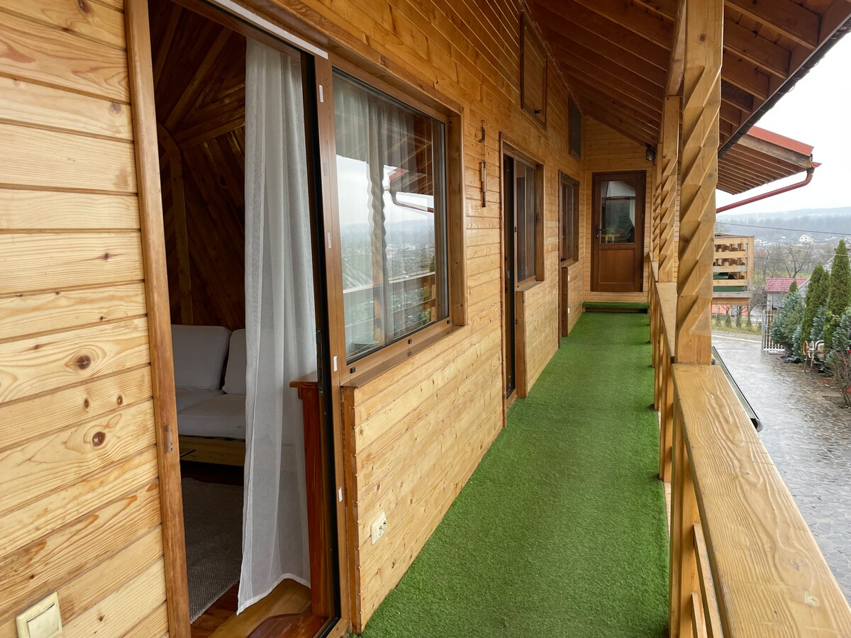 A Frame Cabin - Valea Vinului is located in the Maramureș Mountains Natural Park (the second largest area in Romania), on the Wine Valley, part of the city of Viseu de Sus, the street being recognized for the richness of mineral springs. The cottage is located in a place with an unforgettable panorama, overlooking the spectacular hills and the Rodna Mountains. The cottage is located away from the main road, enjoying peace and privacy.