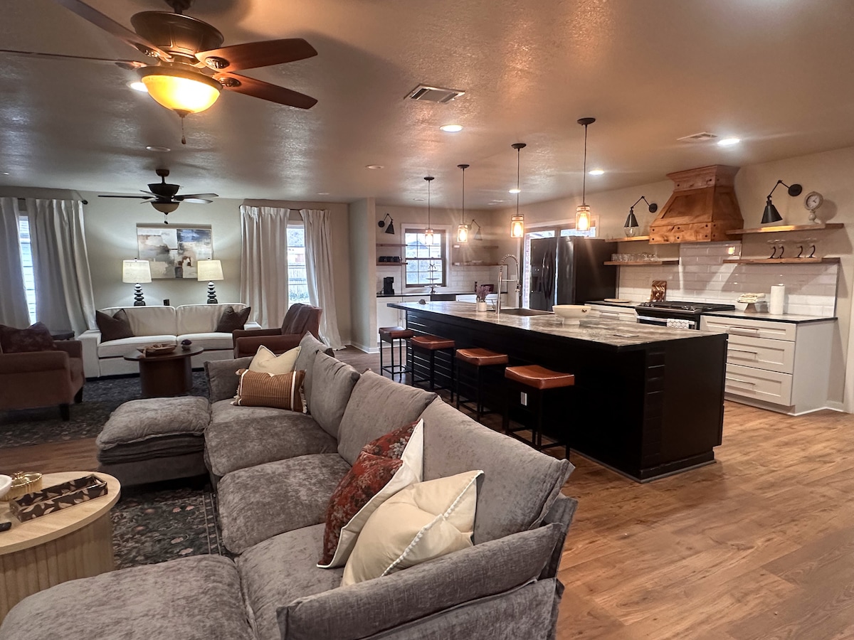 Beautiful cozy cabin located central to Bartlesville, Tulsa, Skiatook, and Pawhuska. A perfect place to step back in time while enjoying all modern amenities including all new top of the line bedding and linens, complimentary coffee/tea bar with flavored teas, creamers, and syrup, and complimentary cookies. Fully fenced backyard where pets are allowed. Indoor and outdoor games provided. The Bluestem Mercantile is within walking distance for your shopping pleasure.
