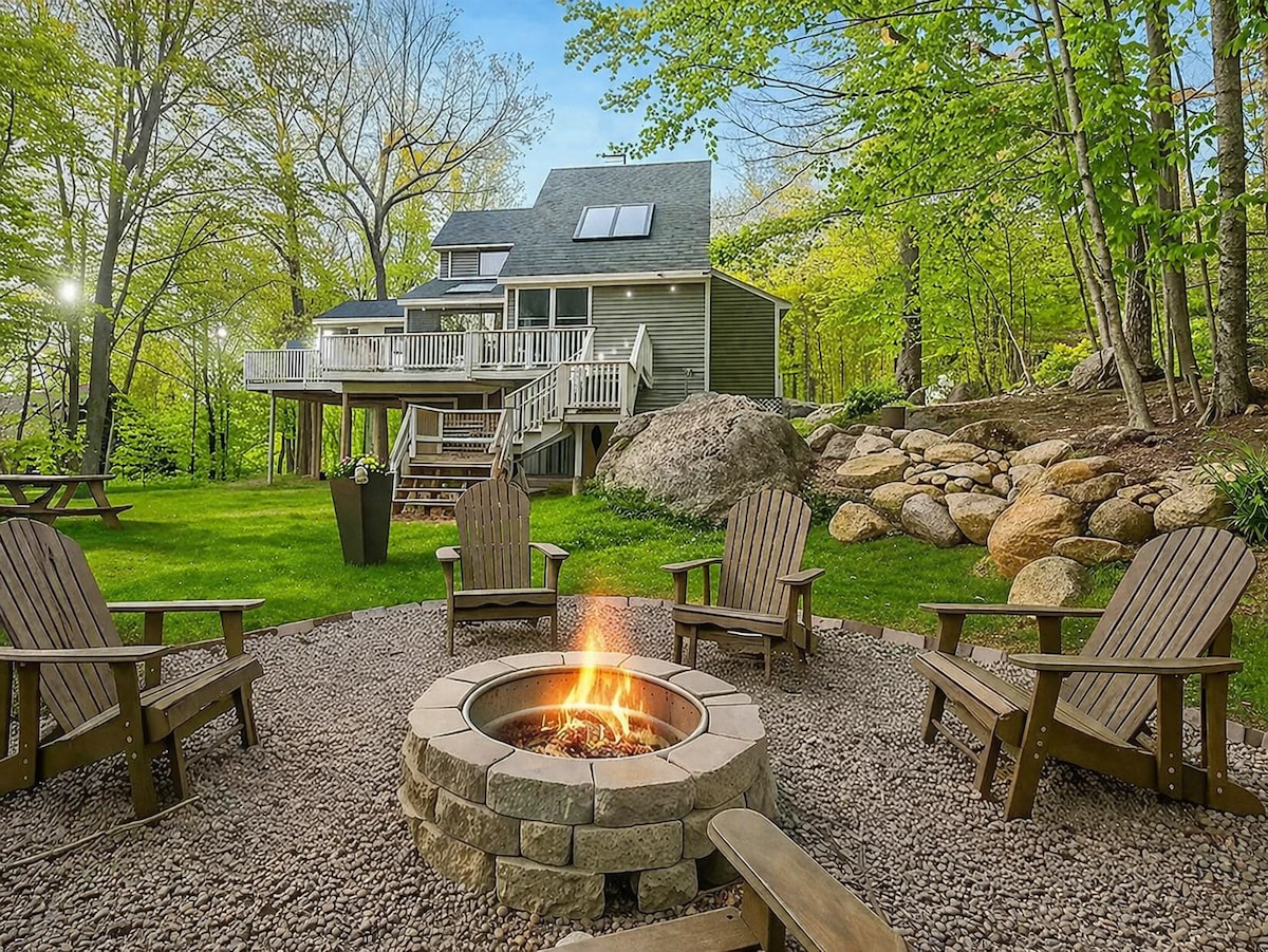 A real cabin in the North Woods secluded, private, and surrounded by open sky and sweeping mountain views that remind you why you came. This log-style retreat sits deep in the woods above Tamworth, fully equipped for comfort without sacrificing the rugged feel. Hike local trails, stargaze in near-zero light pollution, or sit by the fire pit with the mountains in front of you. The optional wood-fired sauna steps from the door is the perfect end to the day. Sauna available as a one-time add-on.