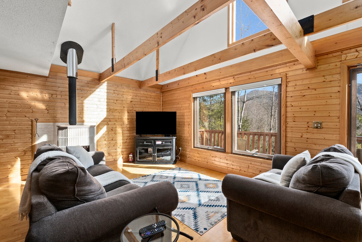 Charming White Mountains Chalet with private jacuzzi Additional amenities shared with Nordic Village located just across the street including and indoor/outdoor pool, sauna,jacuzzi, gym, tennis courts, small pond with boats in summer/ ice skating in winter and children’s petting zoo. An open concept living area w/ modern kitchen fully stocked with all the necessities Located in a very quiet community Breathtaking views of the mountains. Perfect Location for a White Mountains getaway!