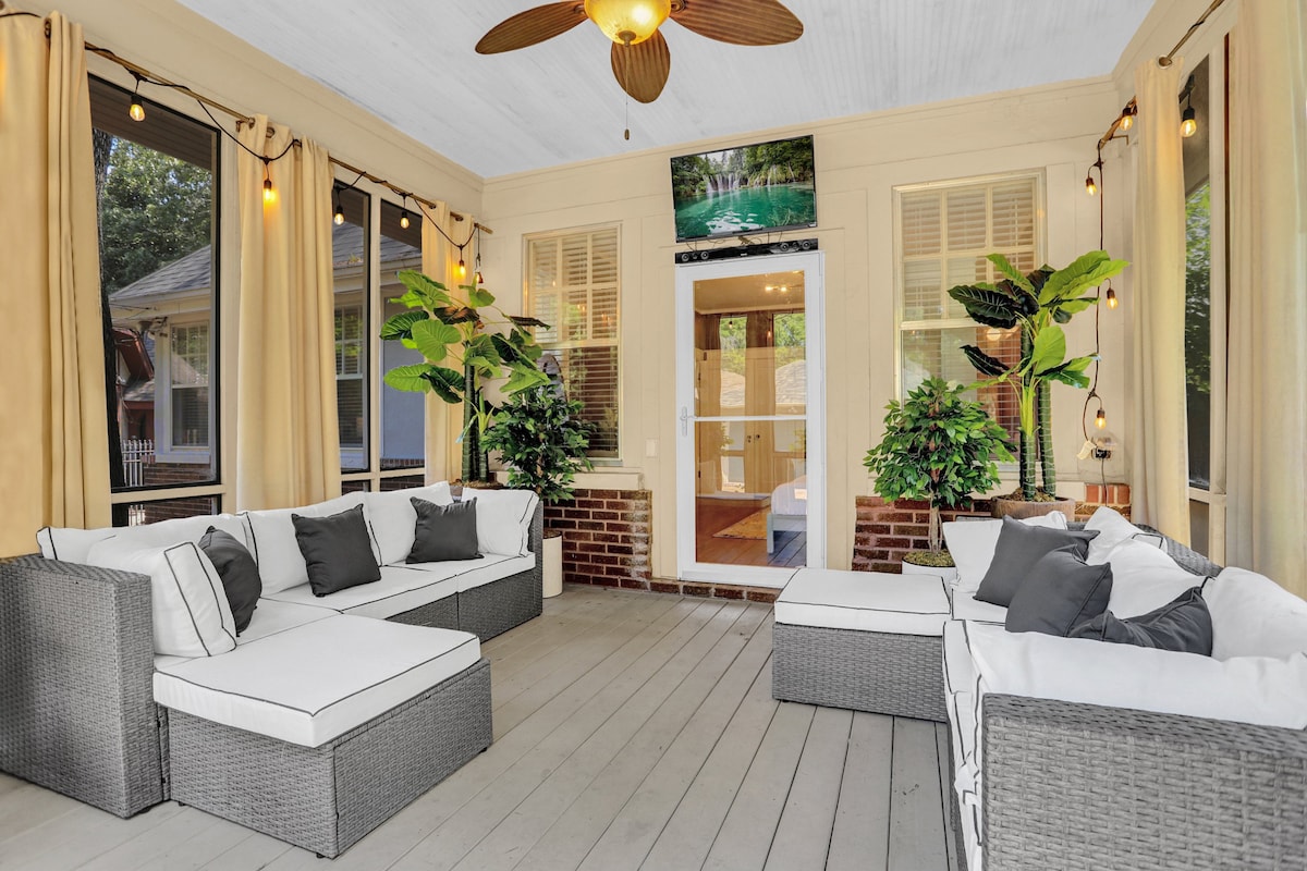 Immerse yourself in the Soul of Memphis in our centrally-located 1907 Arts & Crafts Carriage house. This luxury tiny home was taken to the studs and completely redone with historic preservation and architectural design at the heartbeat of the project. Nestled in the Historic Annesdale Mansion Preservation District, we're the ideal space for a small family, a couple's getaway, or a traveling nurse. State-of-the-art home theater, 24' cathedral ceilings, gated parking under carport & full kitchen!