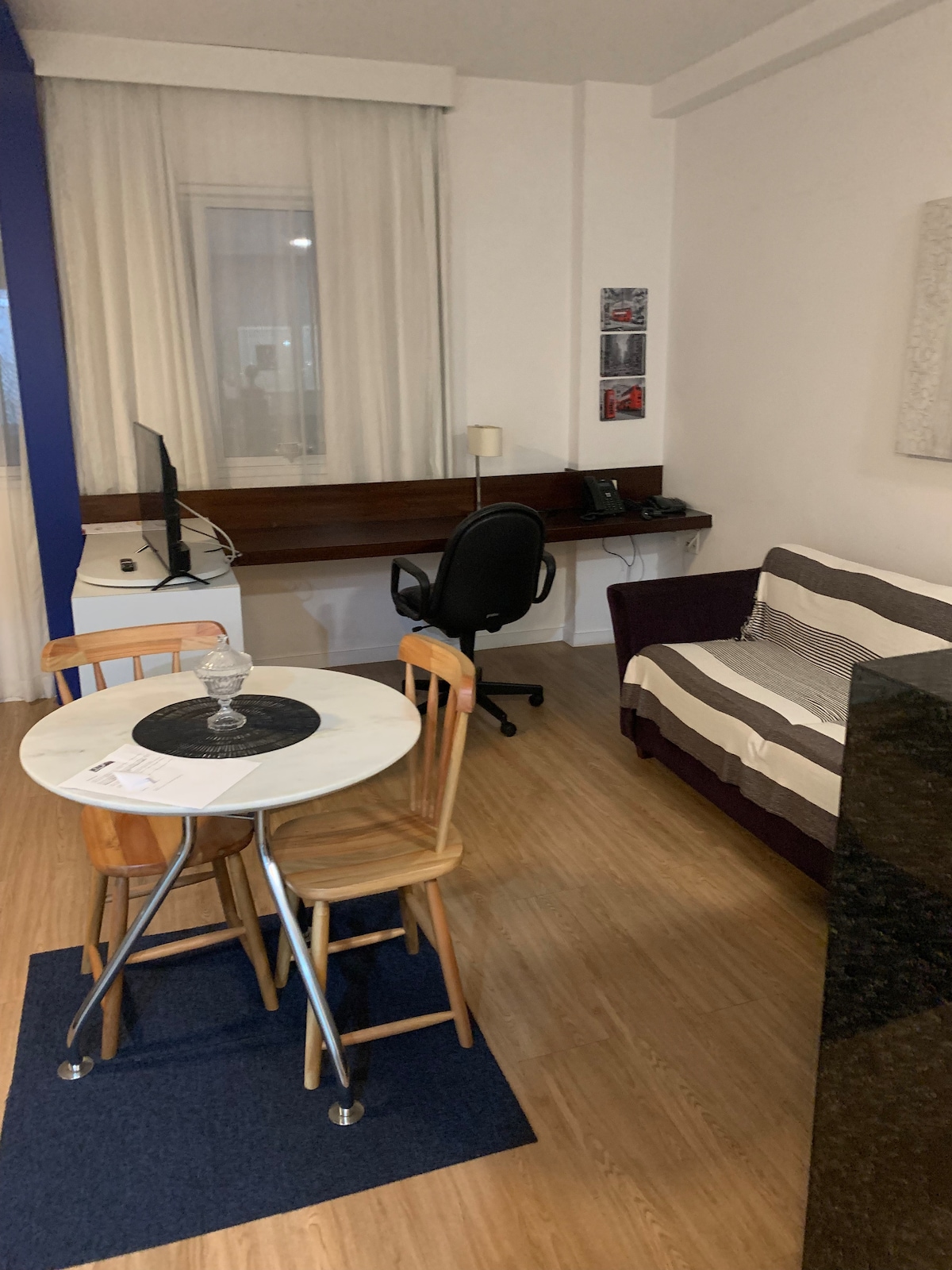 Flat com localização privilegiada em Alphaville, ideal para negócios e eventos. próximo aos shoppings Iguatemi e Tamboré. No raio de 100m , mercados, farmácias e academias. O espaço inclui cozinha equipada, ar-condicionado, varanda, Wi-Fi rápido, TV Smart, cama com enxoval, armário e fechadura eletrônica. O prédio oferece academia, coworking e lavanderia (fichas R$ 10). Manobrista de estacionamento (R$ 30/dia). Entrada: 15h | Saída: 11h. Regras: proibido fumar, festas e visitas não cadastradas.