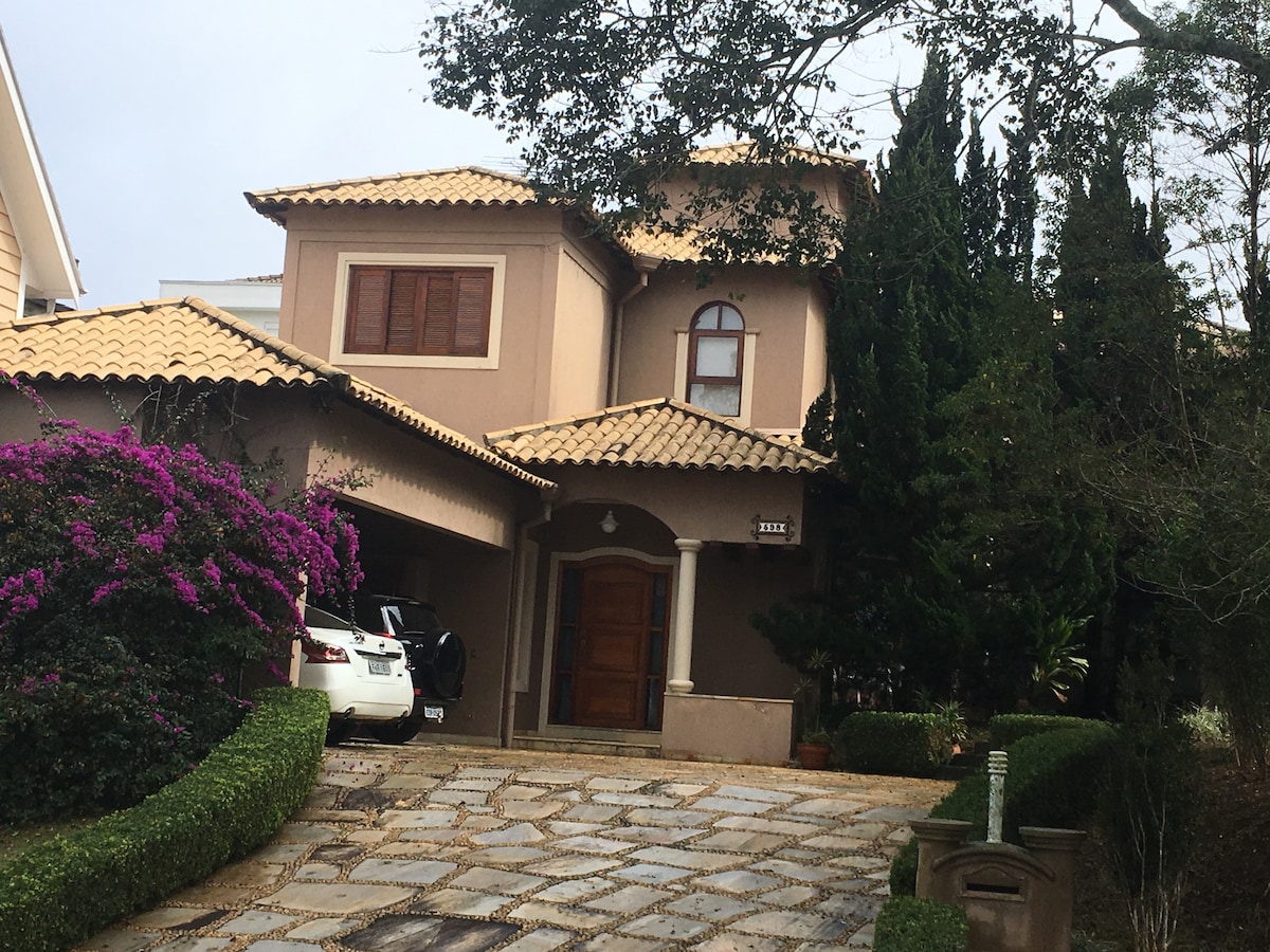 Nice and quiet house in the Morada das Estrelas neighborhood withing Aldeia da Serra, Sao Paulo, Brazil. With 400 Sq.m. of constructed area, surrounded by a front and back garden in a plot of land with 600 Sq. m., the property has 4 bedrooms (2 in suites), the master with 3 closets, all the rooms have great wood and glass windows and great natural lighting. Living room, dining room, media room 1, media room 2, office, toilet, kitchen, maid's quarters and service area.