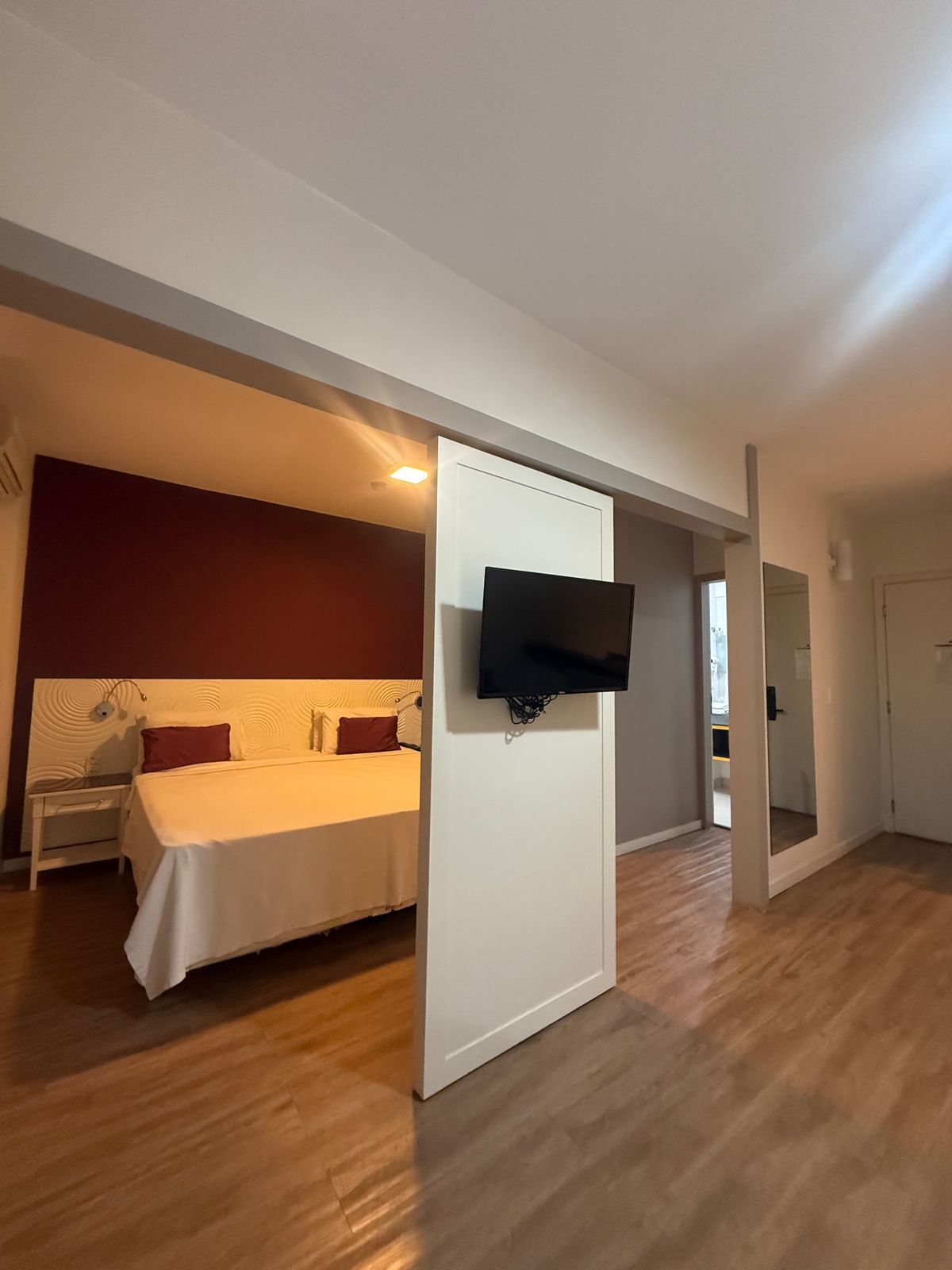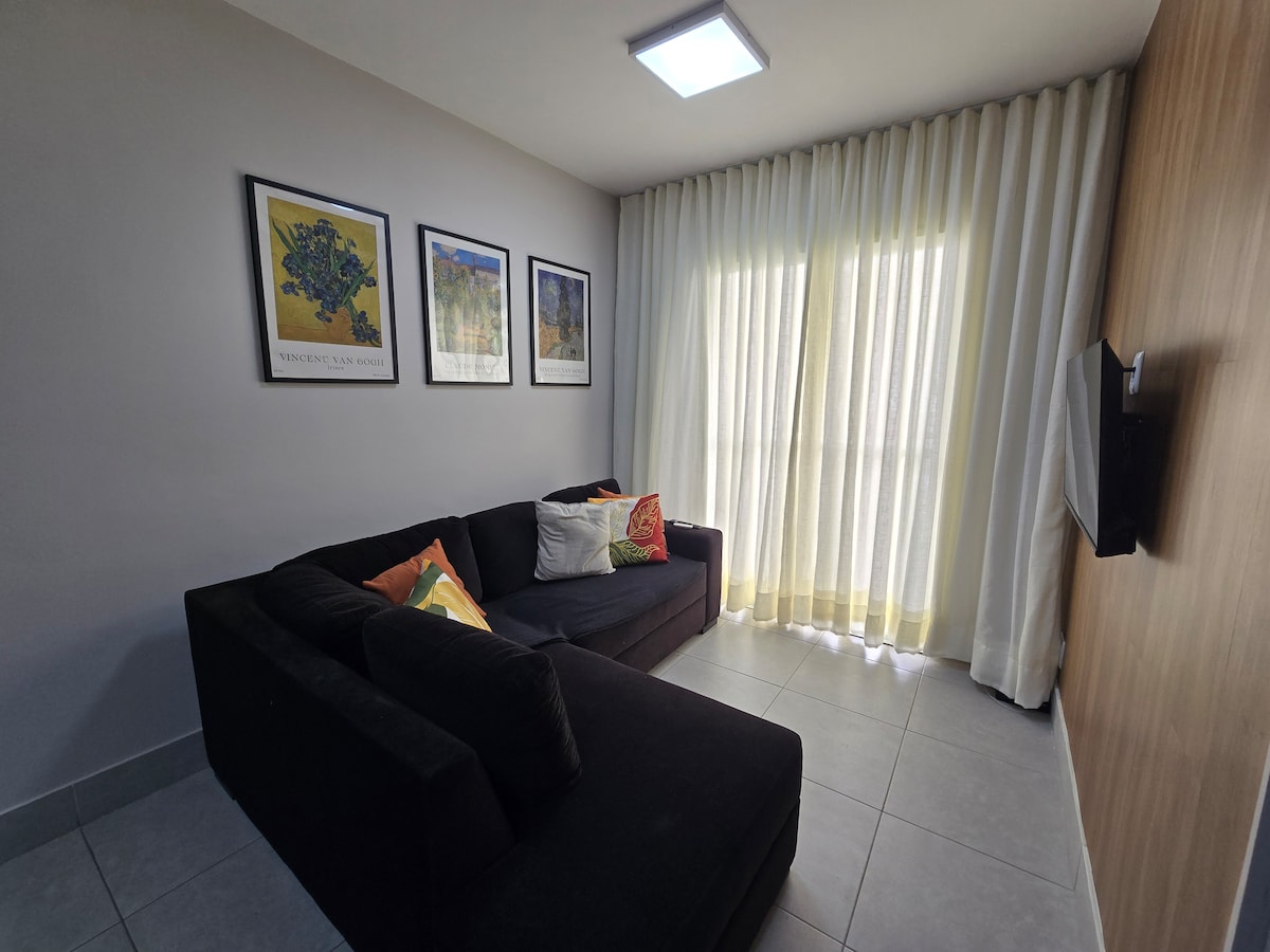 Welcome to your modern retreat in the heart of Alphaville. A space designed to offer maximum comfort to you and your family. The apartment features a comfortable double bed, TV, and internet. The kitchen is fully equipped for preparing your meals. Amenities: * Air conditioning. * Wi-Fi. * Fully equipped kitchen. * Modern bathroom. * Note: All outlets are 220V. Full access to common areas: * Gym. * Laundry. * Parking. * 24-hour concierge.