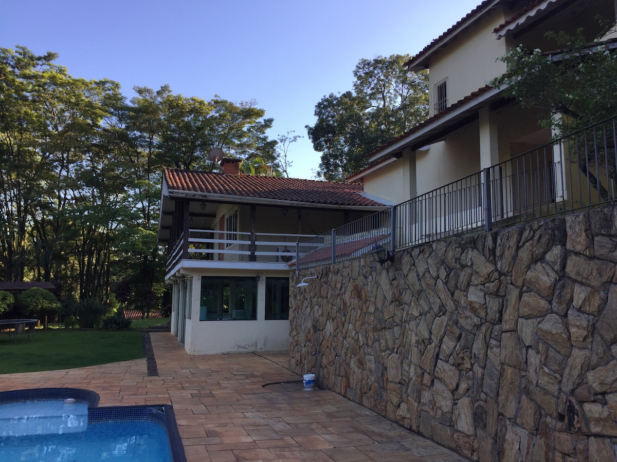Espaço excelente para descansar e se divertir em família, a menos de 50km de São Paulo, casa mista com alvenaria e madeira, com amplo espaço e muita vegetação, mini campo de futebol, churrasqueira, lareira, aparelho para exercícios e região com ótimas trilhas para caminhadas.
