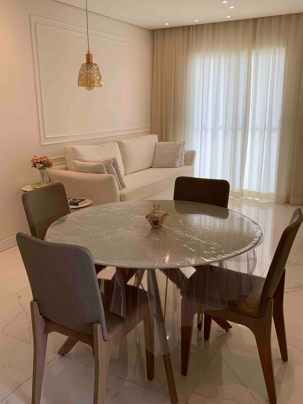 Flat aconchegante, moderno e equipado. Serviço básico de limpeza e arrumação (2ª a sab). Bem localizado em área segura e rua tranquila. Perto das principais empresas da região e de comodidades como supermercados, padarias, bancos, farmácias e centros de compras. Ao lado da Praça Oiapoque onde está localizada a encantadora Igreja da Gruta. Estrutura de lazer (piscina, academia, quadra de tênis). WiFi fibra de alta velocidade próprio no apartamento. Uma vaga de garagem sem demarcação.