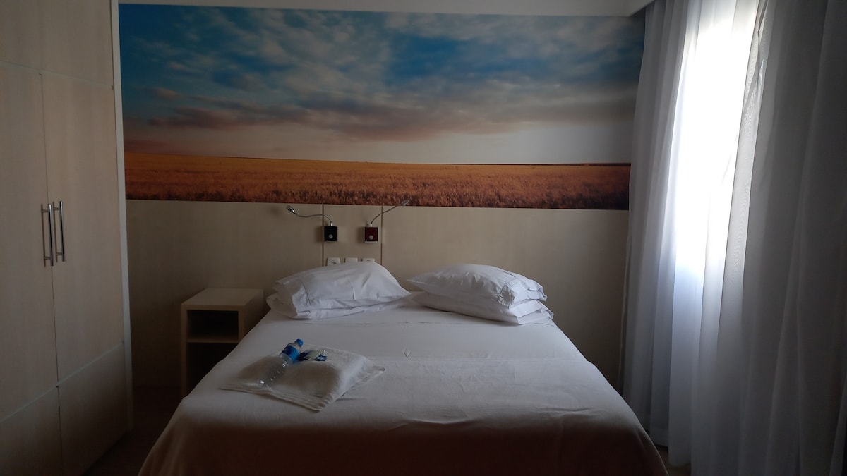Apartamento aconchegante com excelente localização no centro de Alphaville! Próximo à padarias, mercados, shoppings, centro comercial, restaurantes, bancos, farmácias e hospitais. Localizado em rua silenciosa, segura e tranquila, o edifício conta com: Recepção 24h. Restaurante com café da manhã, almoço e jantar (consultar valores no restaurante). Academia. Piscina (no momento encontra-se em reforma). Entre outros… OBS: é possível separar as camas para 2 de solteiro.