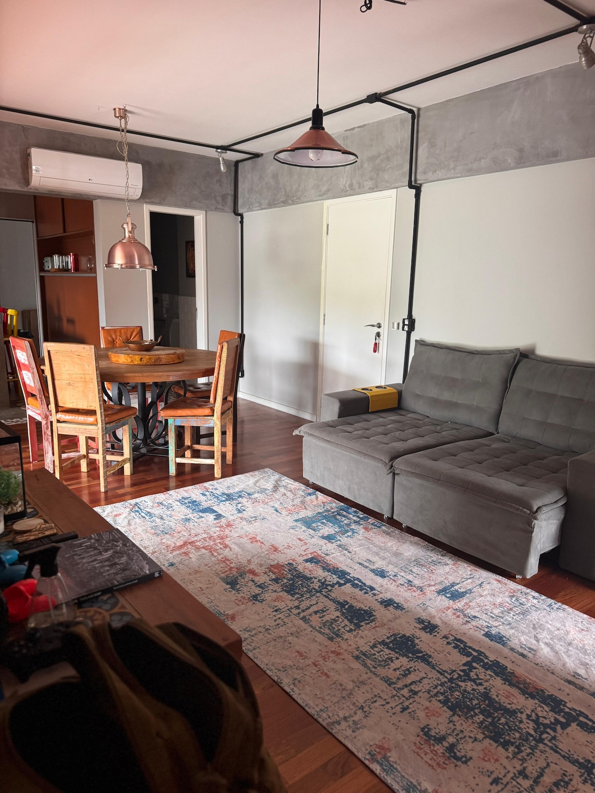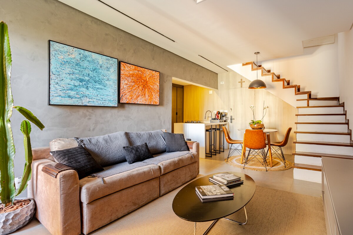 Esta Apartamento descolado, moderno e totalmente fora do padrão convencional. Cada detalhe foi pensado para criar uma experiência única de conforto, estilo e praticidade. Espaços bem distribuídos, design diferenciado e estrutura completa para uma estadia incrível, seja a trabalho ou lazer. Ideal para quem busca mais do que hospedagem: busca viver uma experiência. acomodação elegante é perfeita para viagens em grupo.