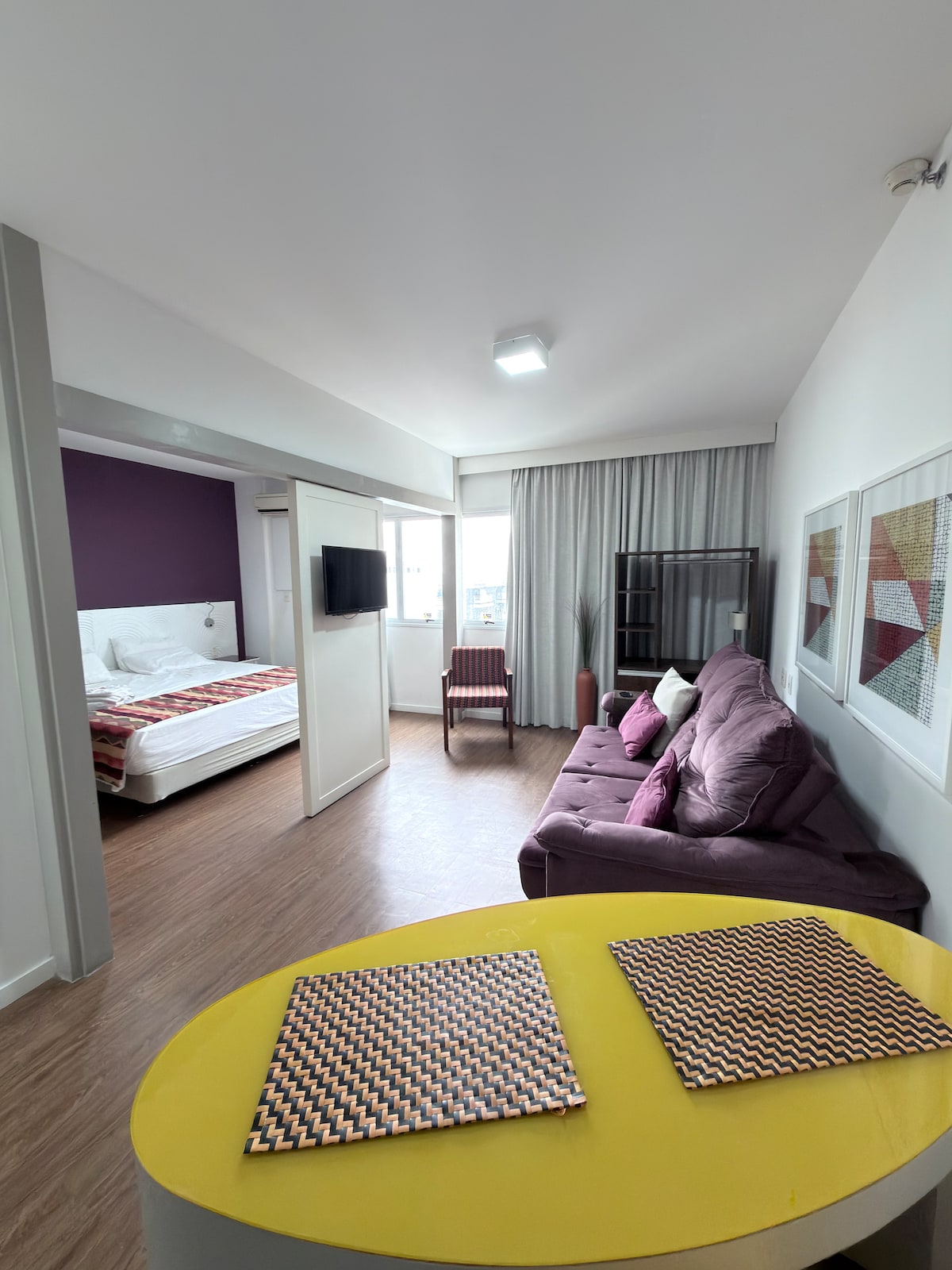 Studio bem localizado próximo a Alphaville. Equipado com: Cama box casal Colchonetes Estação de trabalho Ar-condicionado Quente e frio TV 69” Wi-Fi Móveis planejados Estação de trabalho Cortina blackout Mesa de jantar Microondas Cafeteira nespresso Cook top por indução Depurador Sanduicheira Secador de cabelo Ferro e tábua de passar Curta a estadia no lindo condominio Selenita com área de lazer completa. Piscina Academia Salão de festa Churrasqueira Mercadinho Lavanderia Sala de jogo