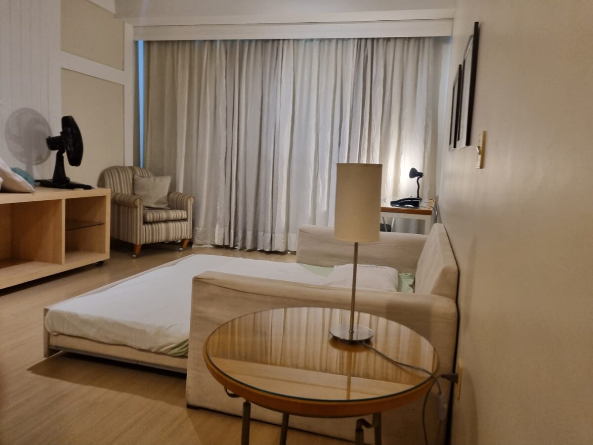 Ponto central em Alphaville. Até 4 hóspedes. Wifi e TV a Cabo. Ar condicionado. Quarto com cama de casal que pode ser transformada em duas de solteiro. Na sala, há um sofá-cama onde cabem dois adultos, além de mesa de trabalho. Banheiro com ducha. Cozinha com fogão, micro-ondas, geladeira, panelas, pratos, etc. Restaurante (pagamento é feito à parte). Uma vaga na garagem com manobrista. Prédio tem máquina de levar e secar. Fica defronte ao centro comercial Alphaville.