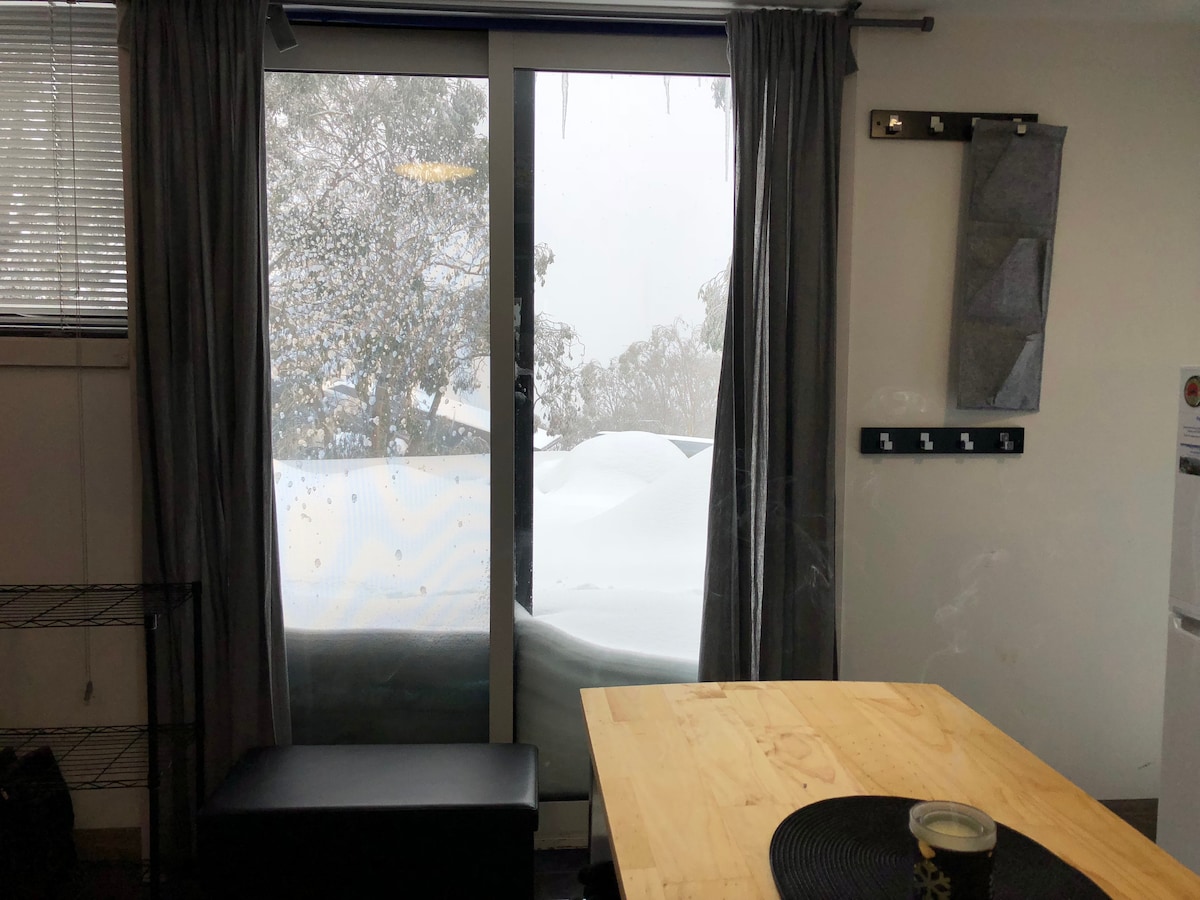 Small but cosy modern studio apartment, fantastic premium central location with lovely views to Mt Spion Kopje. Sleeps 3. 1 x double bed 1 x single (top bunk) Kitchen, bathroom, laundry. 100 metres to Slalom Plaza and the Main chairlift. Most Restaurants/cafes bars/ski hire all within 5 minutes from apartment. NOTE low rates are offered for SELF CLEANING booking. 2 pm late checkout allowing easy clean time. Must BYO BED SHEETS, TOWELS, TEA TOWEL. Doonas, pillows, blankets supplied