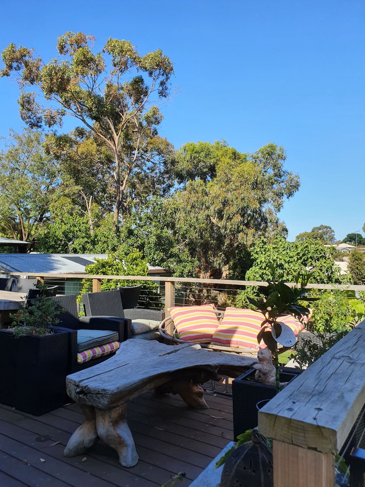 The Vibe: A dog friendly space, surrounded by beautiful established gardens in a quiet riverside cul-de-sac. This much loved home offers hot tub, yoga pagoda and huge outdoor entertaining and play spaces. Hidden away from the bustle of summer tourism you’ll never be short on things to do here -slip on your walking shoes, jump on a bike (10 min to Main Street) or enjoy a walk along the Barwon River at end of the road. Native birds and bush trails abound. It’s your ultimate indulgent escape.