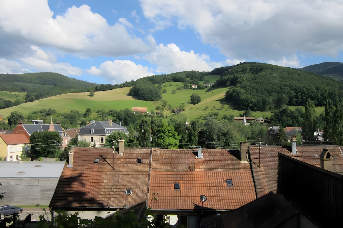 Profitez d'un beau duplex neuf ***, 2 à 4 personnes, au pied des pistes de ski et du GR5, à 200 m des pistes de VTT. Terrasse 20m² plein sud avec une vue sur plaine d'Alsace, Forêt Noire et Alpes ! Cuisine équipée avec lave vaisselle; wifi et TV, vrai lit 140 dans canapé, salle à manger pour 4. Mezzanine: salle de bain avec douche, toilettes, sèche-serviettes; chambre avec lit 160 Place de parking et local fermé pour skis et vélos, avec prise Terrain pétanque et BBQ communs. Coin lavage vélos