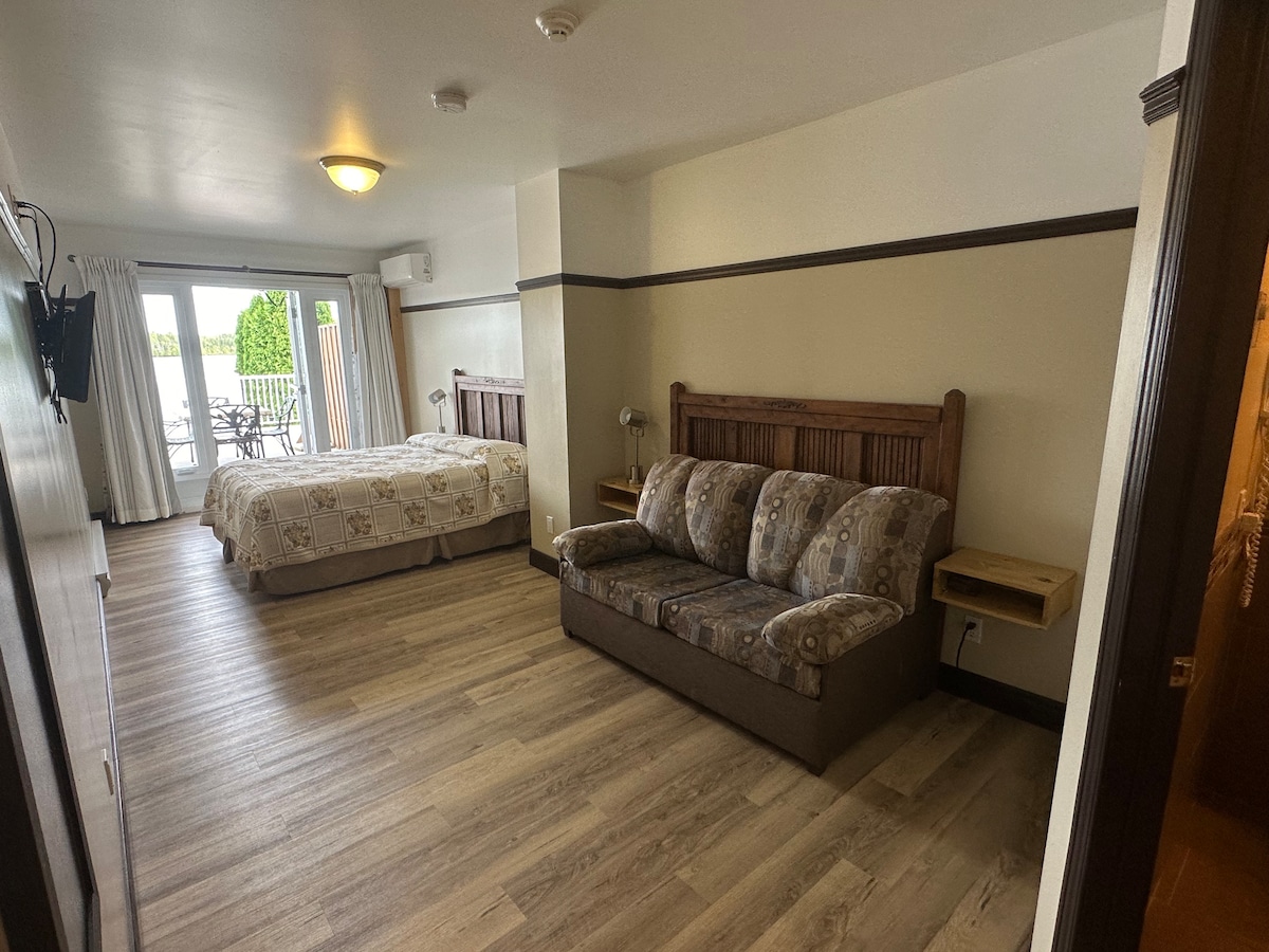 La Vue, Studio 2 personnes avec un petit canapé lit pour un enfant. Laissez-vous charmer par ce studio qui offre plus d’espace qu’une chambre standard en plus de l'autonomie, pour un couple ou avec un enfant. Cuisinette tout équipée et table comptoir. Grand lit, petit canapé lit, télévision, salle de bain grande douche multijet, terrasse aménagée avec une magnifique vue sur le fjord, accès à un espace BBQ et un espace feu extérieur.