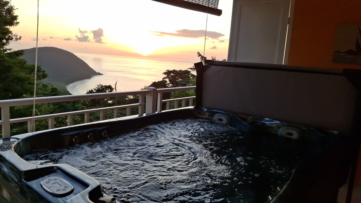 Route du Rhum est un vrai cocon intime au sein d'un jardin tropical avec vue panoramique sur le Grand Cul de Sac Marin. Nid douillet idyllique pour un séjour en amoureux !!! Endroit paradisiaque parfaitement situé pour rayonner sur les points incontournables de notre merveilleuse ile. Le spa privatif niché au milieu des fleurs et de la végétation locale, avec vue sur la mer, est un idéal d'intimité, de détente et de quiétude... pour des vacances inoubliables !