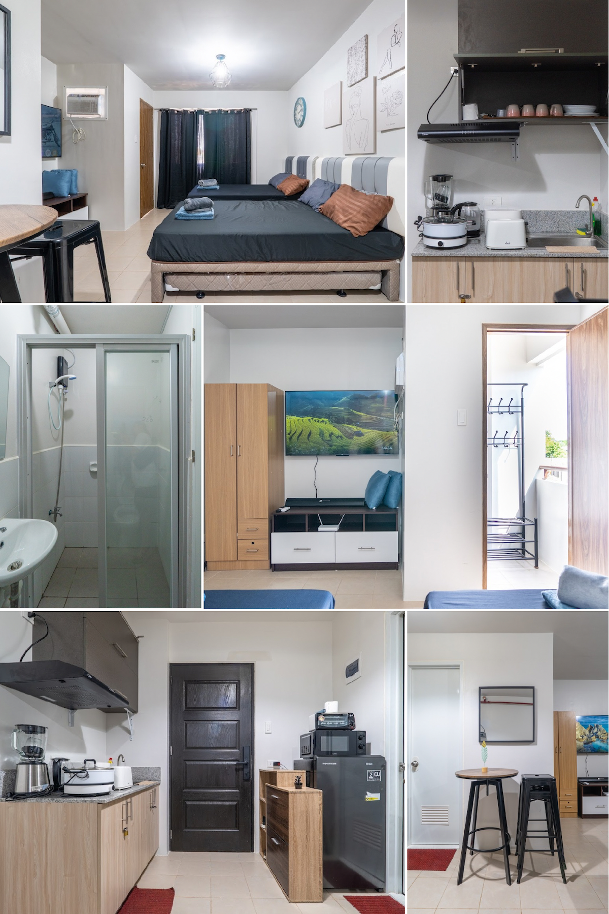 -A true 1-bedroom: Enjoy a restful night on a queen-sized bed with plush linens. -Private balcony overlooking the refreshing pool and lush courtyard. -Wi-Fi connection, full-sized refrigerator and work desk -Proximity to Cebu-Mactan International Airport -Laundromat nearby -Nearby Hospitals: Close to two major hospitals for added peace of mind. -Convenient Access to CCLEX -Quick travel to tourist destinations, resorts and spas!