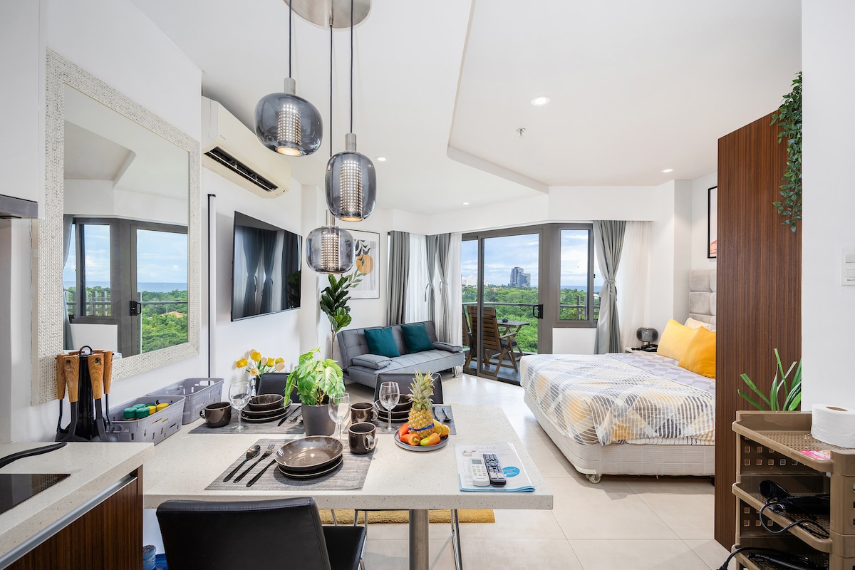 Welcome to your relaxing retreat in the heart of Tambuli Seaside Resort – the only residential resort in Cebu with direct beach access! This stylish studio is perfect for couples, digital nomads, or solo travelers looking for comfort, convenience, and coastal charm. Enjoy a Queen-size bed, coffee machine, Netflix, 300 Mbps WiFi, a full kitchen and a peaceful balcony with a garden view. Whether you're working remotely or just unwinding, this cozy space has you covered.