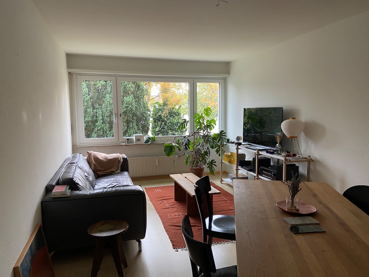 A cozy, and bright 3-room apartment with a balcony in a peaceful area of Basel, it's an ideal place for business travelers and tourists who like to discover the secrets of authentic Basel and Switzerland. River Birs which is almost in front of the house is giving you an opportunity for a refreshing walk, jogging, swimming, sunbath, or BBQ. City center 10min by tram, 30 min by a walk along the wonderful river Rhine. St. Jakob 10min to walk. SBB train st. 15min with the tram.