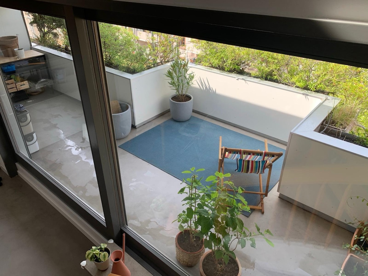 Experience luxury at my centrally-located penthouse, just a two-minute walk from Basel Messe, perfectly located for visitors to all the art venues of the city. Enjoy the bright, open living area with high ceilings with a cozy fireplace and a large dining space, a fully-equipped modern kitchen, a serene bedroom, and a private terrace. This is a personal living space with all amenities. Feel free to contact me for any booking requests or questions.