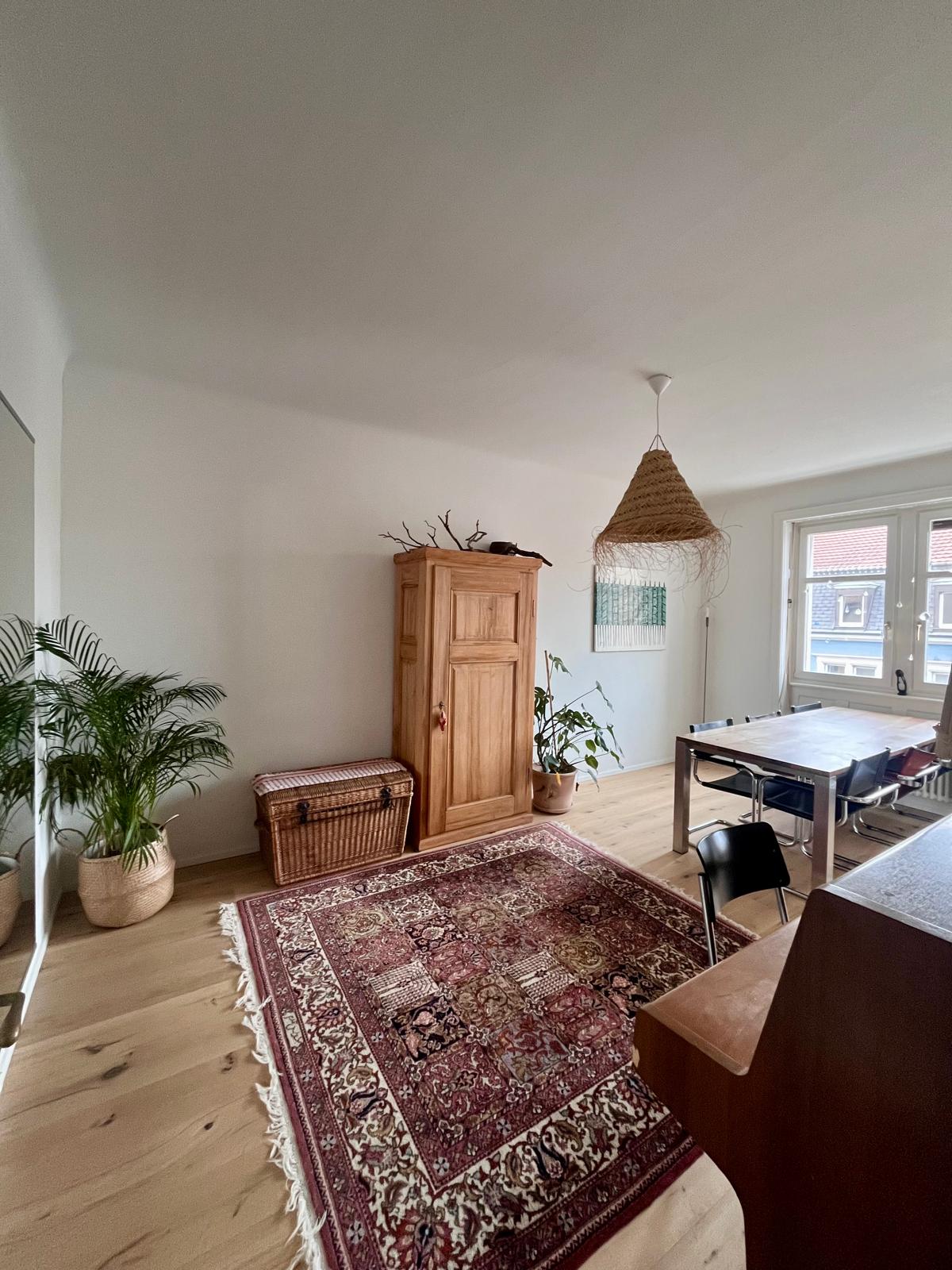 Willkommen in meiner charmanten, lichtdurchfluteten 3-Zimmer-Altbauwohnung! Frisch renoviert mit moderner Küche und stilvollem Bad. Zwei sonnige Balkone laden zum Entspannen ein, der Blick ins Grüne und ein Klavier sorgen für besondere Atmosphäre. Super gelegen mit direkten ÖV-Anbindungen (inkl. Linie zum Bahnhof SBB und Euroairport), ideal für Art Basel oder entspannte Citytrips. Die Tram ist nur 2 Min. entfernt, das Zentrum und den Rhein erreichst du in 5 Min. - Perfekt für deinen Aufenthalt!