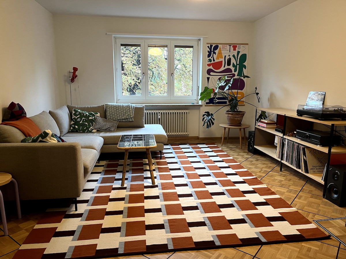 This modern cosy flat in the heart of Basel's old town is warm and bright, perfect to experience the city. The surroundings are full of small owned shops with everything you need in walking distance. Experience the close by market, enjoy tasty coffee in one of the many coffeeshops, have a nice dinner in the bustling streets or even visit a yoga class (we also provide mats)! And afterwards you can come home to a place, where you can relax in a peaceful atmosphere.