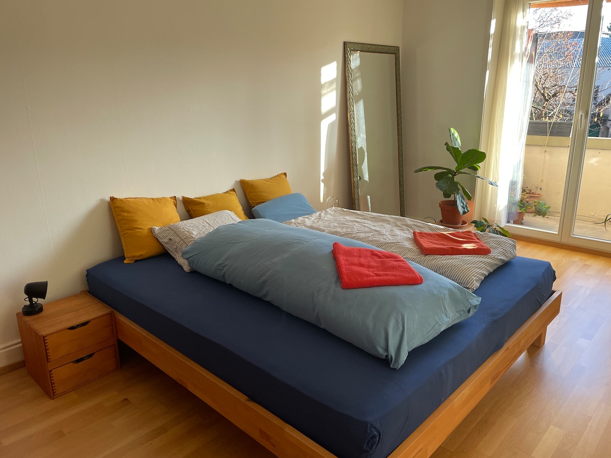 A cozy, and bright 3-room apartment with a balcony in a peaceful area of Basel, it's an ideal place for business travelers and tourists who like to discover the secrets of authentic Basel and Switzerland. River Birs which is almost in front of the house is giving you an opportunity for a refreshing walk, jogging, swimming, sunbath, or BBQ. City center 10min by tram, 30 min by a walk along the wonderful river Rhine. St. Jakob 10min to walk. SBB train st. 15min with the tram.