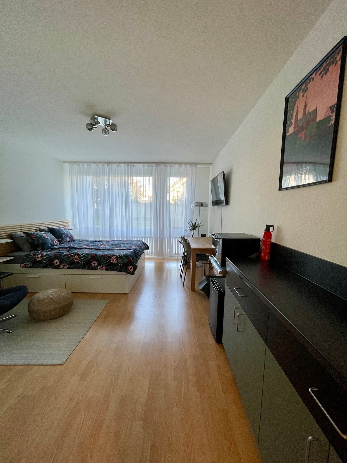 Comfy studio space in central Basel: •20m2 •One room: shower next to bed and kitchenette, toilet separate •Queen size bed •Garden access ★ 'We loved this studio! Very cute, clean and comfortable.' ★ •15 min to Airport (by bus) •10 min to train station SBB (by tram) •Historic old town in walking distance (10min) ★'The studio is like the city of Basel, small but sweet, quiet, relaxing. '★