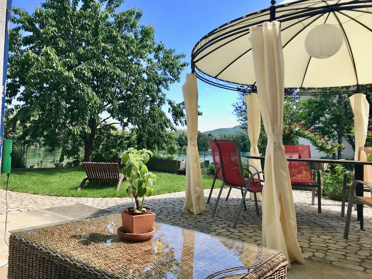 Unser Haus liegt direkt am Rhein im ruhigen Wallbach. Sie finden bei uns Ruhe und Erholung nach einer Wanderung oder Velotour. Sie können von hier aus jedoch auch sehr aktiv sein, Kanu, Rheinschwimmen, Ausflüge nach Augusta Raurica und vieles mehr. Auch sind wir als Ausgangspunkt für Besuche von Basel (Beyeler Museum, ART Basel usw.) durchaus attraktiv. Mit ÖV erreichen sie Basel innerhalb von 1/2 Stunde problemlos. Gerne beraten wir sie auch für weitere Ausflüge in unserer wunderschönen Region.