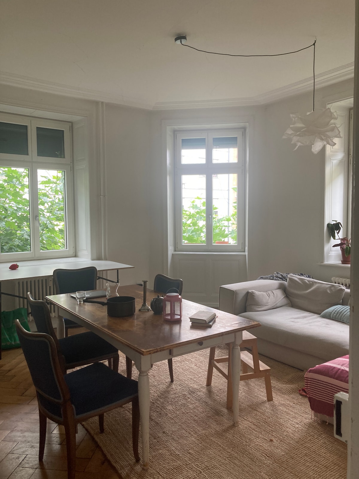 The house is situated in a very quiet area – the only noise you’ll hear are the church bells – yet we’re only 20 minutes away from Basel city center. The railway station is a short 5 minute walk from the house and paid parking is available 250 meter