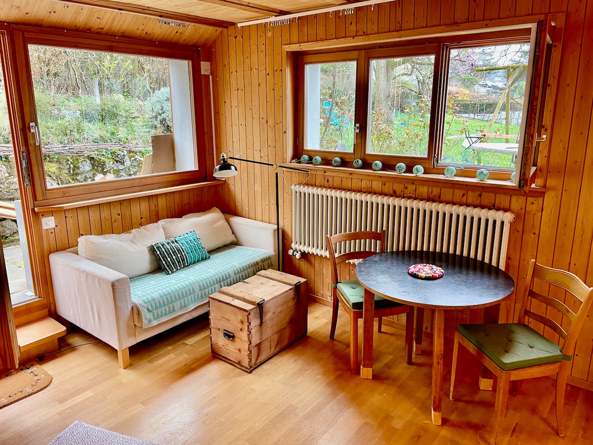 Unser Holzhaus strahlt Gemütlichkeit aus und befindet sich in ruhiger Lage, mitten in einem grossen Garten mit angrenzendem Wald. Basel ist mit den öffentlichen Verkehrsmitteln in ca. 25 min zu erreichen. Das Goetheanum ist 5 min Fussweg entfernt, die Ruine Dorneck gleich ums Eck.
