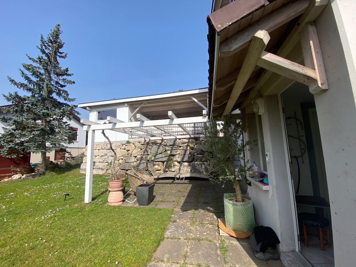 Geniesse alleine, zu zweit oder als Familie, die wunderschöne ländliche Umgebung und die Nähe zur Stadt Basel. Unsere grosszügige Unterkunft mit tollem Garten bietet alles was das Herz begehrt und ist nur wenige Gehminuten vom kleinen Dorfladen und dem öffentlichen Verkehr entfernt. Der Bus bringt dich in 30 Minuten ohne umzusteigen ins Zentrum von Basel. Gerne stellen wir Gästekarte aus, damit fahren Sie kostenlos im Tarifverbund Nordwest Schweiz und haben vielerorts Vergünstigungen.