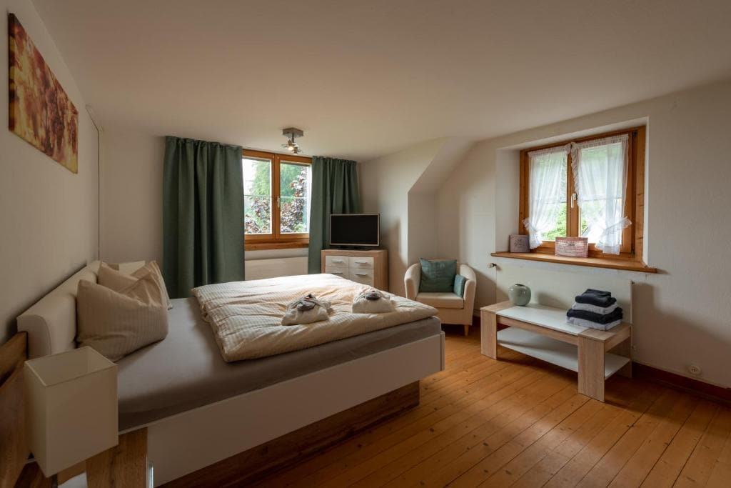 Die gemütlichen Doppelzimmer mit Waldsicht befinden sich im Boutique-Hotel-Teil und bestechen mit Queensize- (160 x 200 cm) oder TWIN-Bett (2x 90 x 200 cm), Designer Möbel, ausgewählter Kunst, Flachbild TV, Minibar, Kaffeemaschine und Dusche auf einer Grösse von 17-20m².