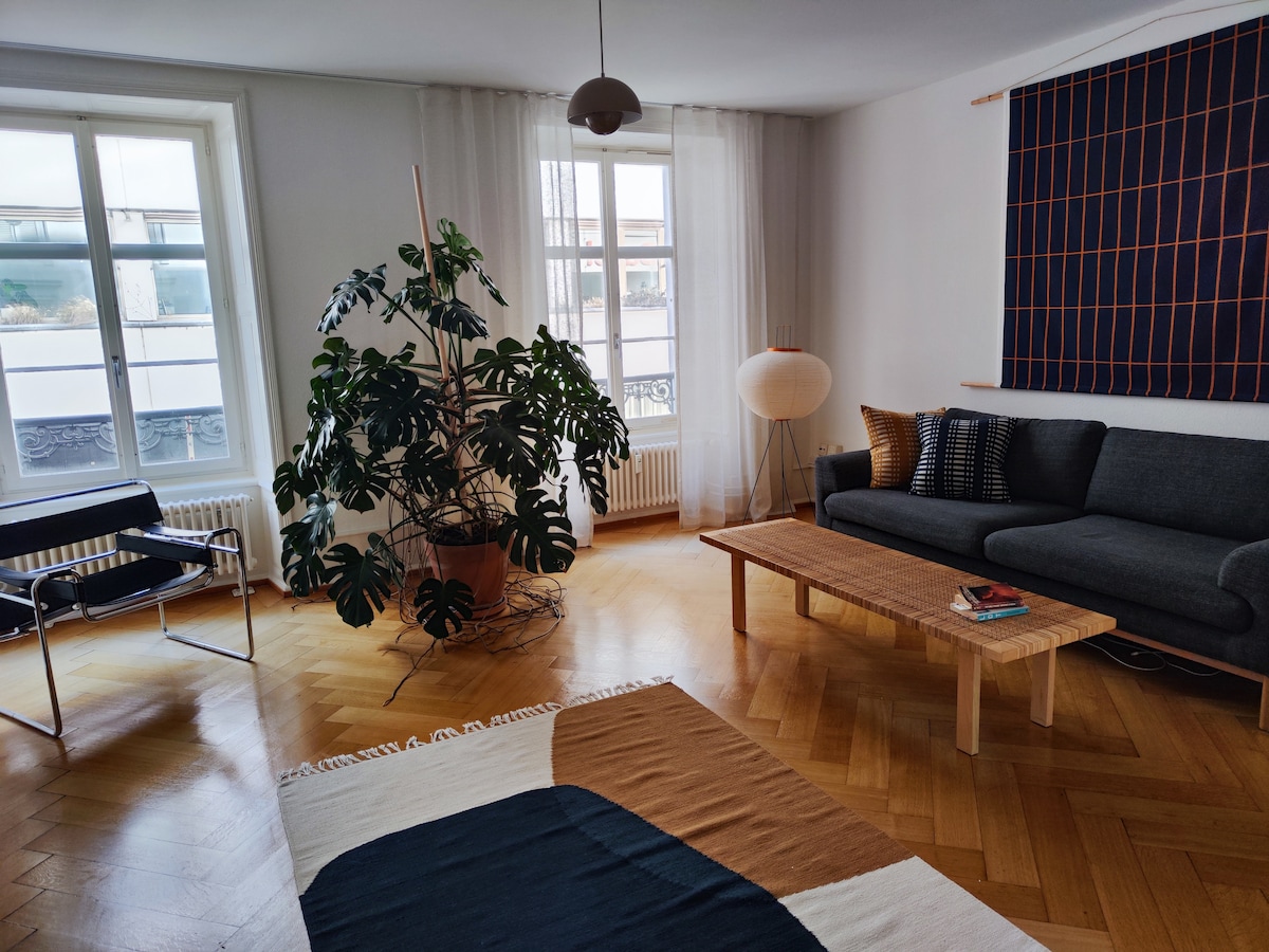 Im dritten und vierten Stock befindet sich die grosse und helle Wohnung. Wer die Stadt hautnah erleben will, liegt mit der Wohnung am Spalenberg ideal. Zu Fuss ist man in 2 Minuten am Marktplatz und in weiteren 2 Minuten am direkt am Rhein. Wer Abends ins Kino oder Theater will, kann alles zu Fuss erreichen. Die Wohnung ist auf 2 Stockwerke aufgeteilt und liegt sehr ruhig.