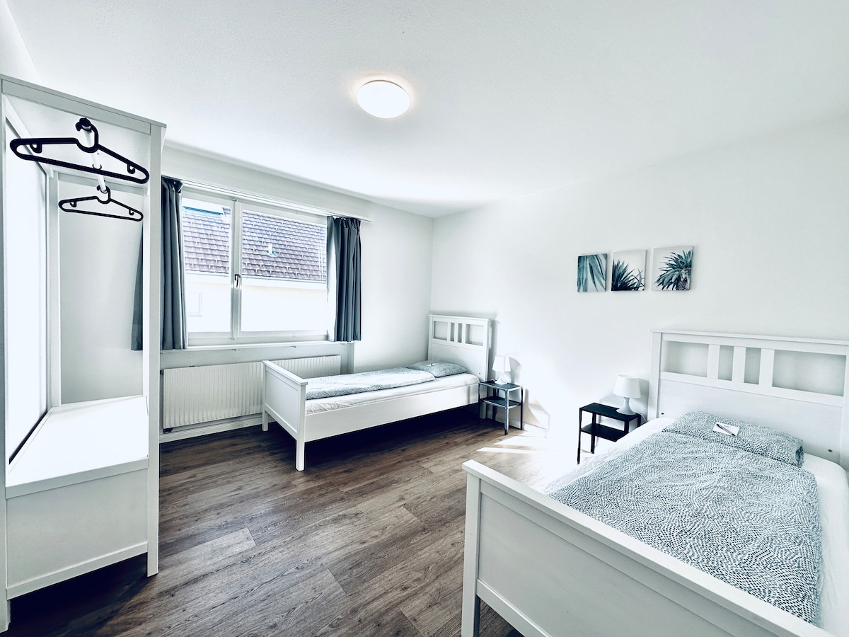 Lovely spacious 3-room apartment in quiet neighborhood. This very nice spacious 3-room apartment (1st floor) offering two bedrooms (4 beds) a large living with dining, two bathrooms, washing machine and tumble dryer in the apartment as well as a large kitchen and a balcony.