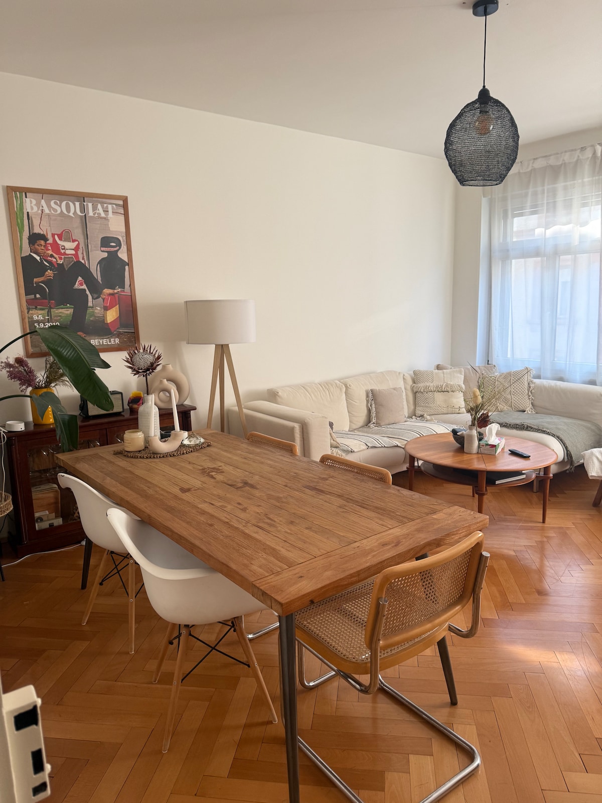 Stilvolle, lichtdurchflutete Altbauwohnung im Herzen von Basel – nur 1 Minute vom Rhein entfernt. Hohe Decken, warme Morgensonne bis in den Nachmittag und ein Balkon mit Blick ins Grüne schaffen eine ruhige Oase mitten in der Stadt. Perfekt gelegen mit direkter ÖV-Anbindung (Tram 11, Bus 30 und mehr) – ideal für Art Basel, Eurovision oder entspannte Citytrips. Küche & Bad mit Warmwasserboiler, eigene Waschmaschine. Ein Zimmer bleibt privat.