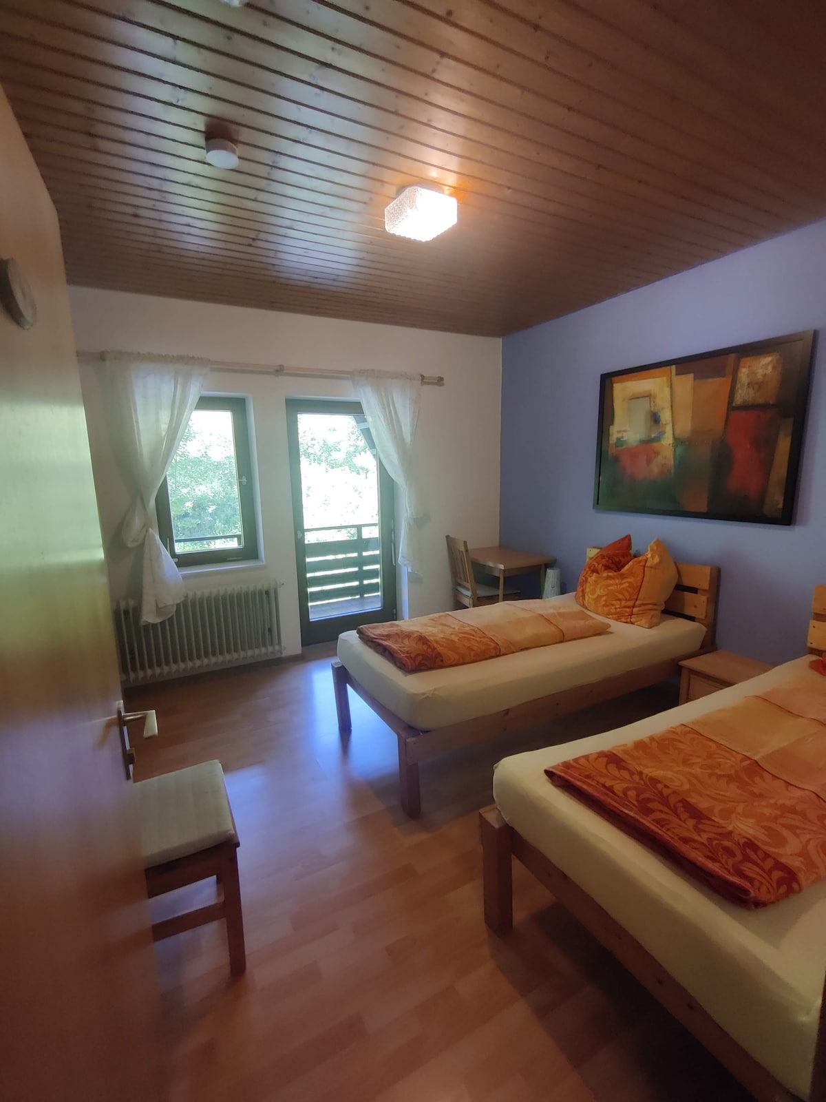 Vergiss deine Sorgen – in unserer geräumigen und ruhigen Unterkunft. Unser grosses Gästehaus bietet in zwei grossen Zimmern Platz für bis zu sechs Personen. Euch stehen eine grosse offene Wohnküche, eine gemütliche Sitzecke, zwei Badezimmer (eines mit Dusche und eines mit Badewanne) und ein Balkon zur Verfügung. Auf Anfrage können wir euch ein Frühstück oder Abendessen zusätzlich zubereiten. Der Schartenhof liegt in einer kleinen Talsenke direkt unterhalb des Gempenturms.