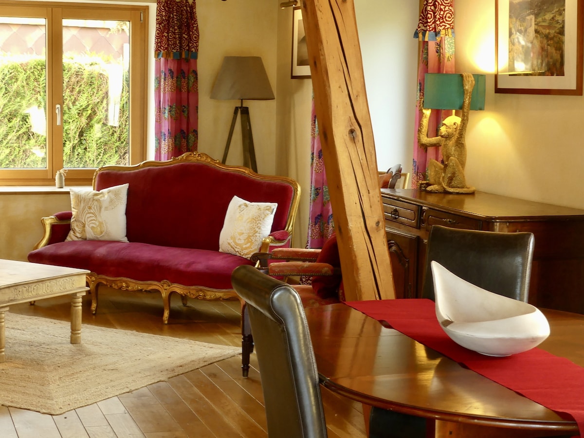 A stay in peace and quiet ... Located in Ungersheim, village in ecological transition nestled in the heart of Alsace, enjoy a barn typical of the nineteenth century completely renovated combining modernity and authenticity. With a capacity of 8 people, fully privatized, with a closed parking, you can combine tourism and relaxation thanks to its spa area and sauna.
