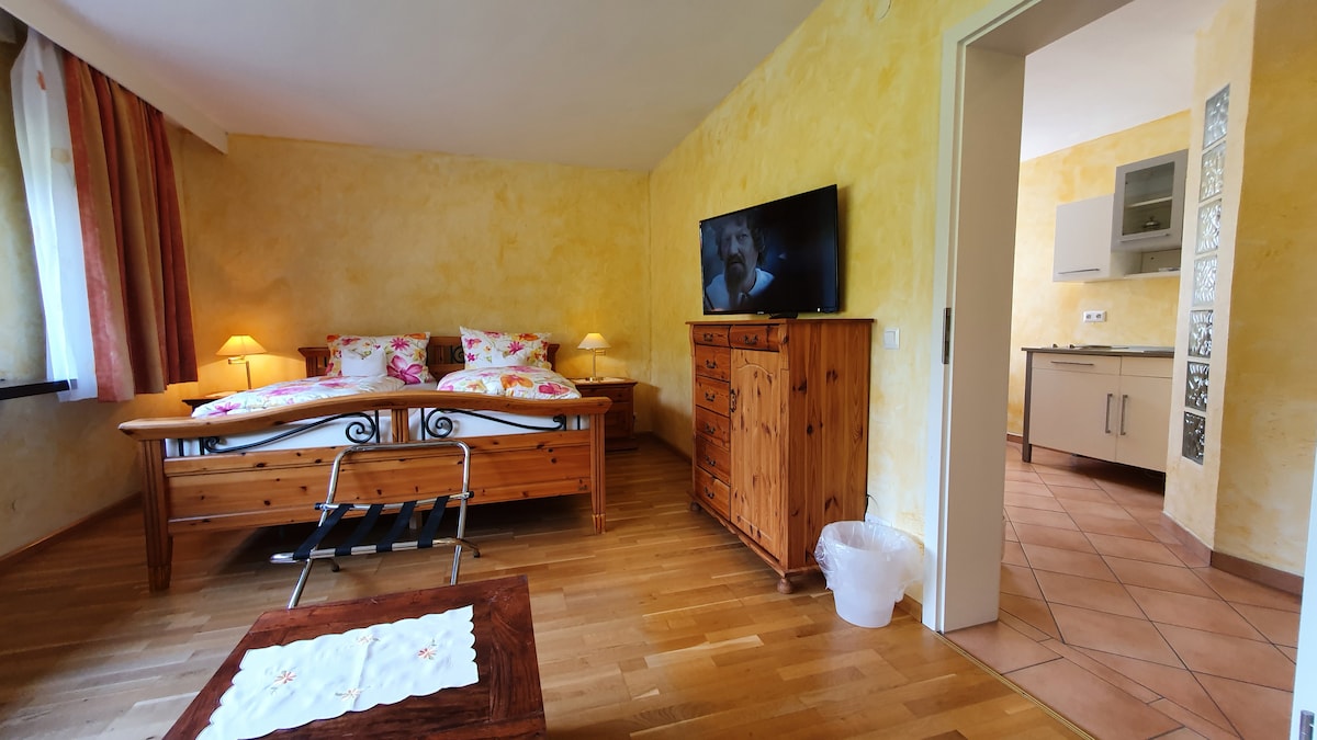 Recently built guesthouse on the property of an old mill. We (two families) live in the main building. Both apartments have a seperate entrance and a terrace showing to the little creek which gives it a romantic touch. The place is 10 km from Basel which can be reached by bus or train in about 30 minutes. In the village nearby you´ll find a supermarket and other stores. Good starting point to explore the Black Forrest. The mixture of nature and civilisation makes it a special place!