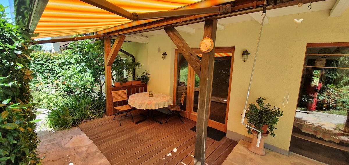 Logement indépendant au cœur d'un petit village de 400 habitants. Situé dans la région des trois frontières et aux portes du Jura alsacien, de nombreuses activités s'offrent à vous. Tourisme vert, culturel ou tout simplement repos; tout est possible. Le logement fait 50 m2 et dispose d'un agencement haut de gamme. Un jardin paysagé de près de 5000 m2, une terrasse privative et l'accès à la piscine font de ce logement une petite perle. Un carport est disponible pour votre voiture.