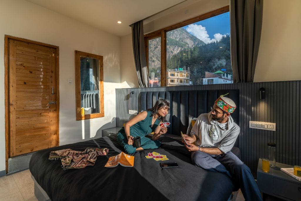 It is located right in the heart of Old Manali. We have an excellent location with a mesmerizing view of the valleys & mountains. All rooms have ample sunlight throughout the day. We have a Common space and various options to sit outside as well.